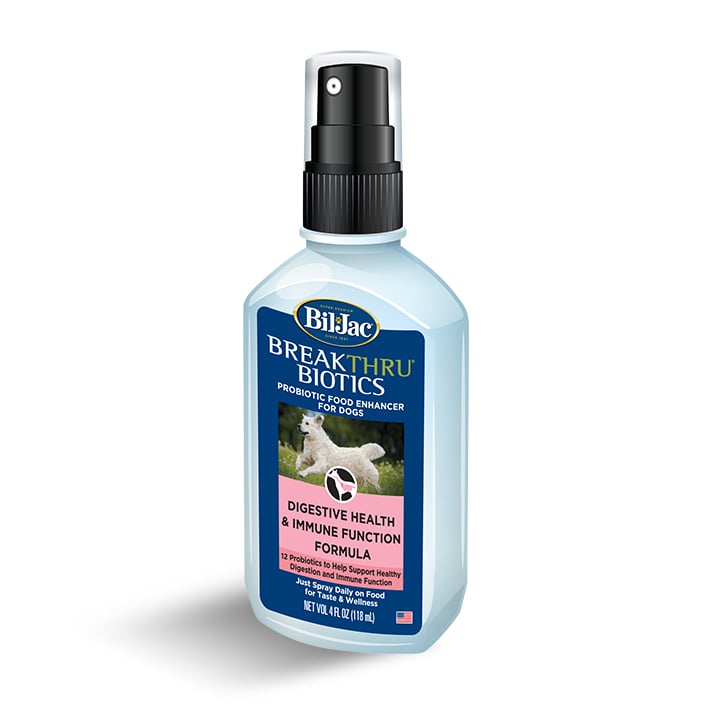 BreakThru Biotics Daily Probiotic Food Enhancer es una forma proactiva y de gran sabor de darle probióticos a su perro. Este spray natural fácil de usar tiene 12 cepas de probióticos activos para apoyar la salud digestiva y la función inmunológica. Simplemente rocíe la comida de sus perros todos los días. ¡Los verás lamer el tazón para limpiarlo y les encantará el sabor!