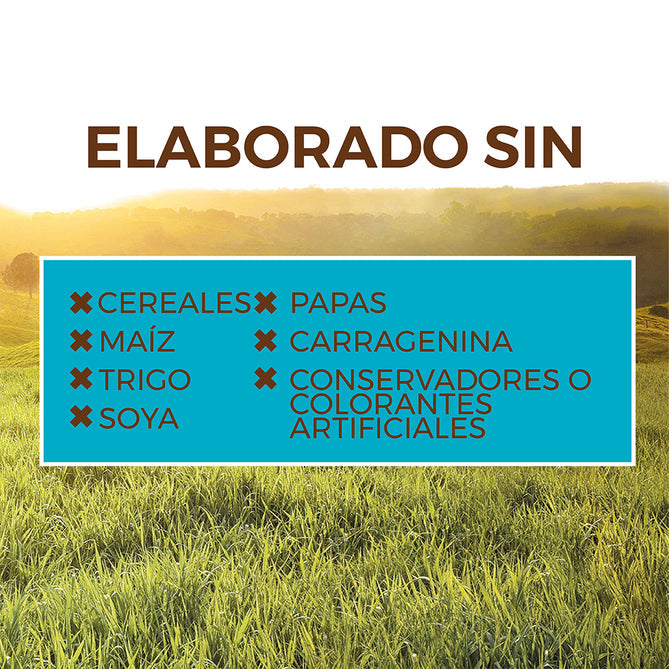 ✔ Sin granos, sin maíz, sin soya, sin gluten, sin colorantes ni conservadores artificiales.