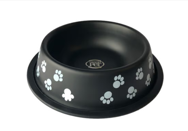 Grand Pet Elite - Tazón de Acero Negro Matte con Huellas Blancas