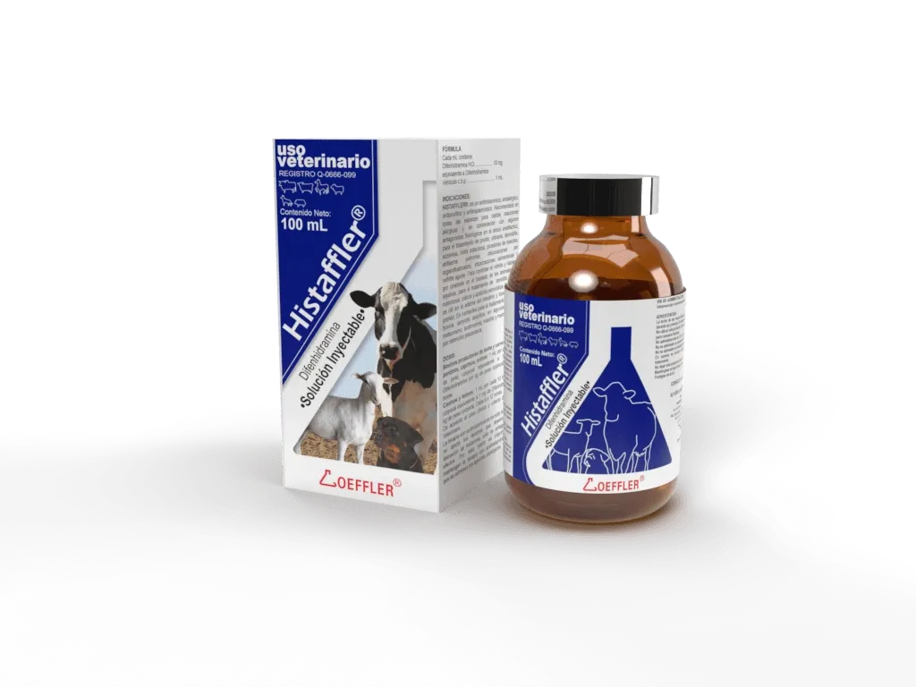 HISTAFFLER es un agente antihistamínico, antialérgico y antiespasmódico, indicado en todas las especies para el tratamiento de dermatitis alérgicas, rinitis estacional, enfisema pulmonar, en caso de intoxicación ocasionada por ingestión. Útil en el tratamiento de la nefritis aguda. Recomendado para el tratamiento de influenza equina y asma de tipo alérgico. Por su acción antiespasmódica sobre el músculo liso es útil en el tratamiento de cierto tipo de cólicos en los equinos, además de ser útil para aliviar el meteorismo en rumiantes. Por su poder antitóxico se recomienda como un coadyuvante cuando se presentan problemas de mastitis, ocasionadas por retención placentaria.