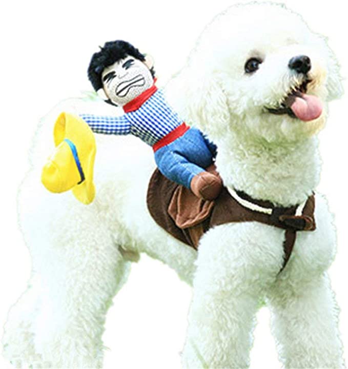 - Muñeco de vaquero bonito: "Mira" Un caballero gracioso con una rienda en su mano que monta sobre el perro está llegando a nosotros. Cuando caminas a tu perro en la calle, atraerá la atención de mucha gente.