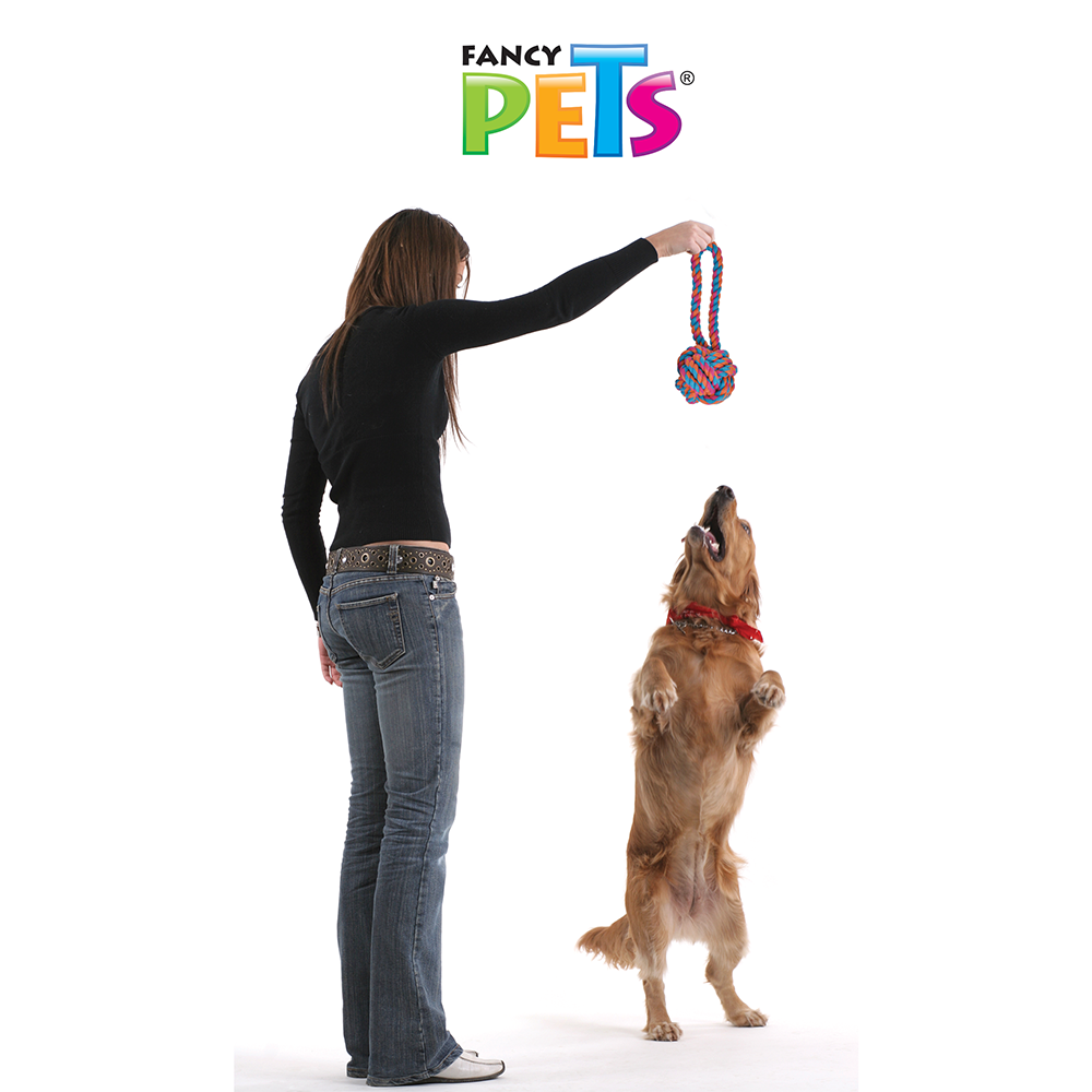 Juguete de hilo elaborada con materiales que resisten jalones y mordidas, con nudos que invitan al perro a mordisquear.