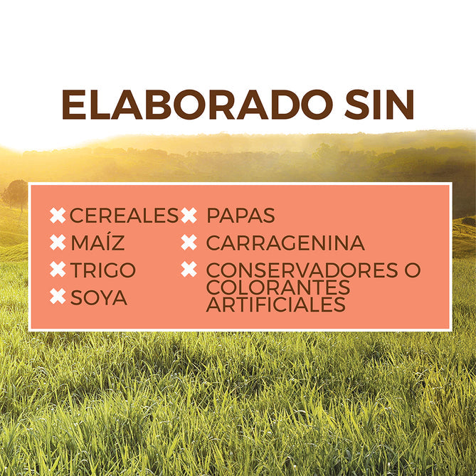 ✔ Sin granos, sin maíz, sin soya, sin gluten, sin colorantes ni conservadores artificiales.