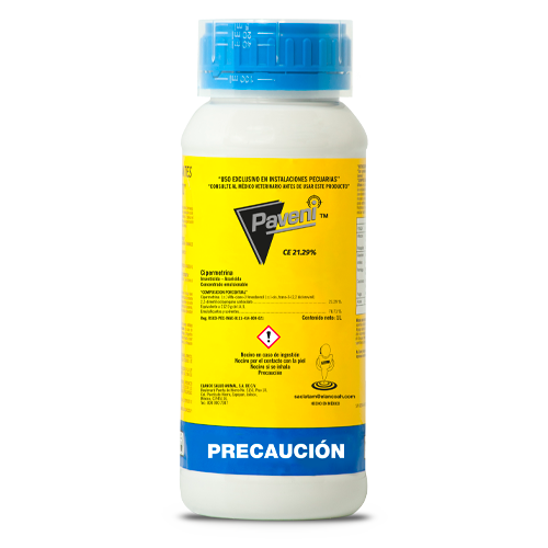 PAVENI es un insecticida-acaricida concentrado emulsionable, formulado a base del ingrediente activo cipermetrina perteneciente a la familia de los piretroides. Es un insecticida sintético, de rápida acción y efecto residual con poder de desalojo y derribe. Está indicado para su uso en instalaciones pecuarias para el control y eliminación de ectoparásitos y plagas domésticas.