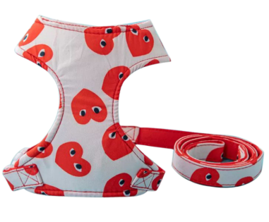 Bonita pechera Comme des garçons para perros con estampado de corazones, diferentes tallas
