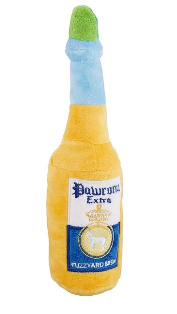 Peluche botella de cerveza perro juguete con chillido. Salud! Este delicioso juguete súper suave seguro que será el favorito de tu cachorro. Mide aproximadamente 10.5 in. Este juguete está muy bien hecho y es seguro para el color, no tóxico y no alérgico, un juguete de juego, amigo para tu perro. Lavable a máquina.