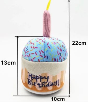 Adorable peluche con forma de pastel de cumpleaños sin sonido, ideal para regalar en el cumpleaños de tu perro pequeño o toy.