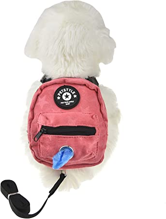 - Arnés y correa: la correa del pecho es ajustable y fácil de poner y quitar. La correa para perro está conectada por un anillo en D resistente de acero inoxidable. Esta mochila puede ser una correa de arnés, bolsa para artículos de transporte y dispensador de bolsas de excremento. Es un producto maravilloso.