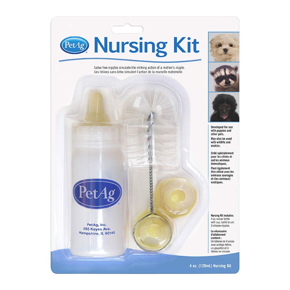 Biberones y tetillas especialmente diseñados para bebés pequeños y grandes: 2 oz. para animales pequeños y 4 oz. para animales más grandes La alimentación con biberón permite al animal rechazar la fórmula cuando está llena. La acción del biberón desarrolla los músculos faciales y estimula el flujo normal de saliva.