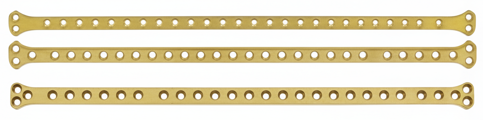 Placas en doble T de titanio diseñadas para aplicaciones ortopédicas y quirúrgicas. Disponibles en múltiples configuraciones de orificios y tamaños para adaptarse a diferentes necesidades de fijación. Su diseño recortable permite personalización intraoperatoria, optimizando el ajuste anatómico en cada caso. Fabricadas con titanio de grado médico para biocompatibilidad superior y resistencia a la corrosión. Ideales para cirugías de traumatología, reconstrucción ósea y estabilización de fracturas complejas.