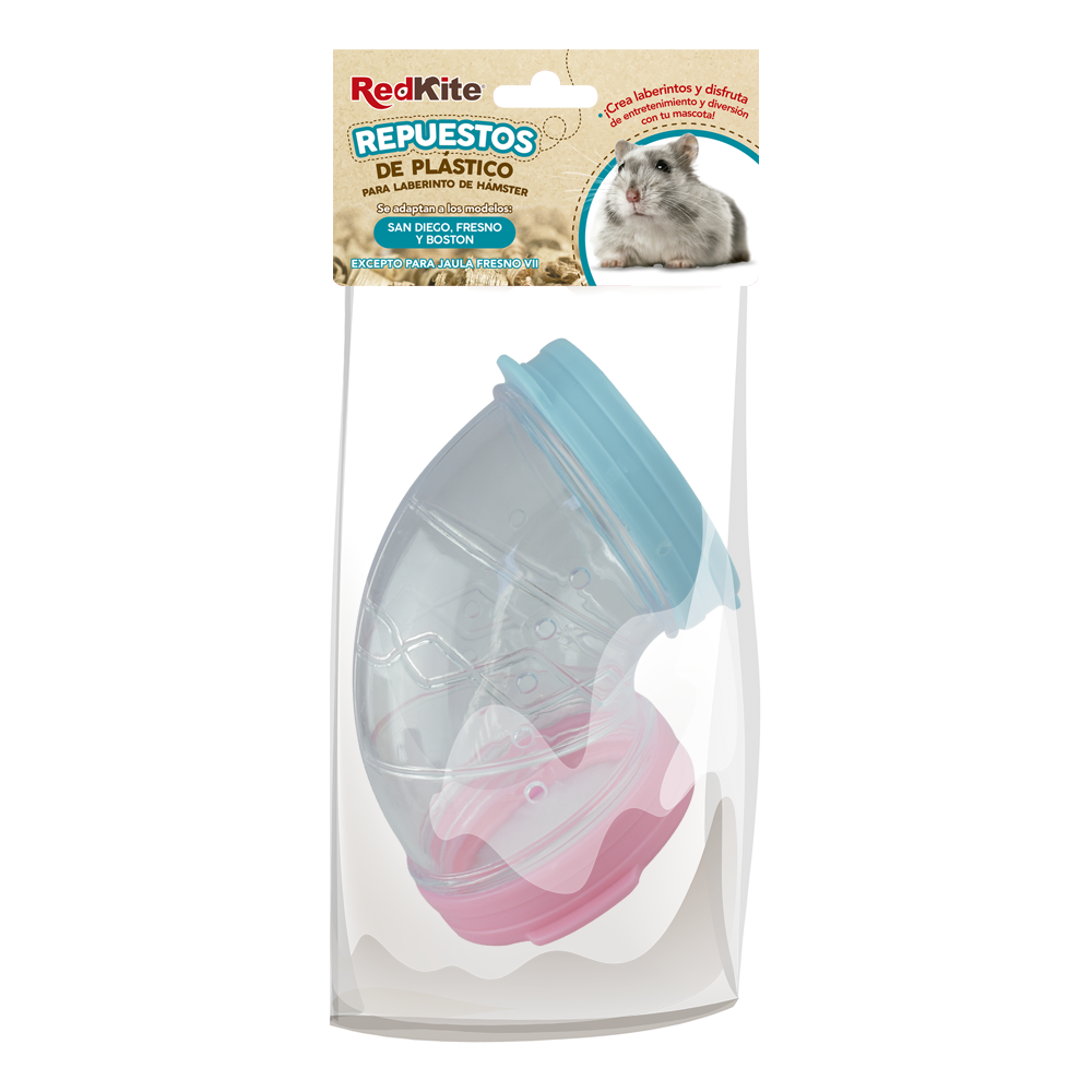 Repuesto de codo con argollas para jaula de hámster. Material de plástico Se adapta a los modelos de jaula Diego, Boston y Fresno (excepto Fresno VII)