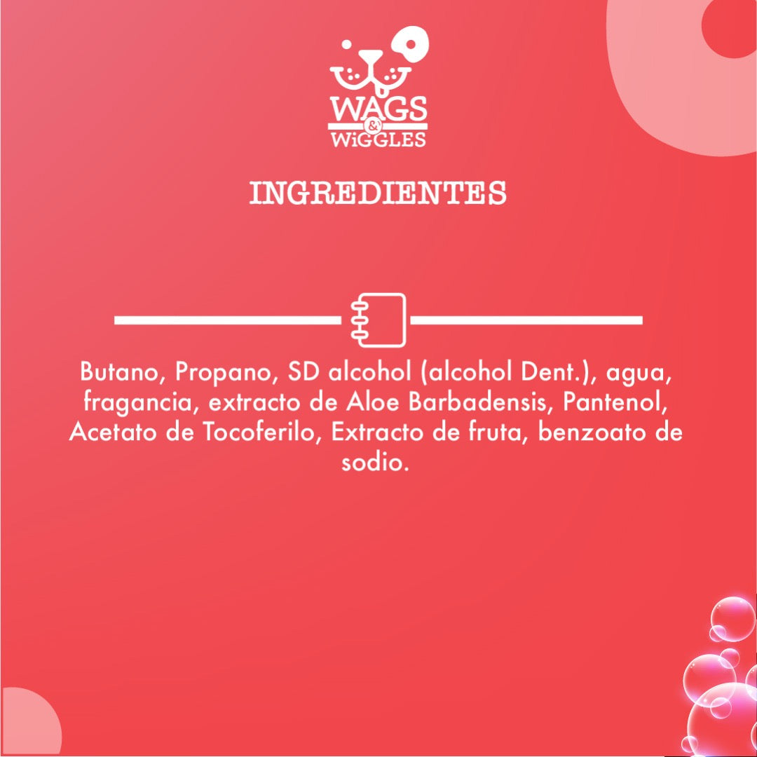 Wags & Wiggles spray de fragancia para perros deja un sutil pero dulce aroma a fresa que tanto a ti como a tu mascota les encantará.